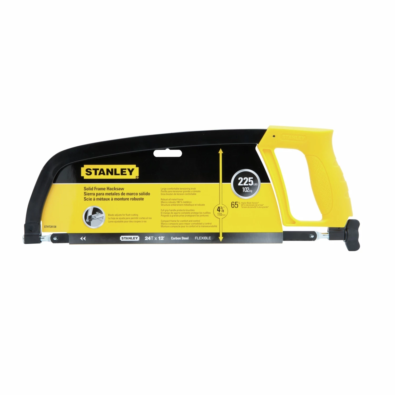 The Stanley 12″ Hacksaw is is built with a robust solid metal frame for strength and long life. This Hacksaw is designed with a screwed moulded black handle to ensure virtually unbreakable bond with blade. Supplied with hi-speed steel blade for smooth cutting which causes less user fatigue.