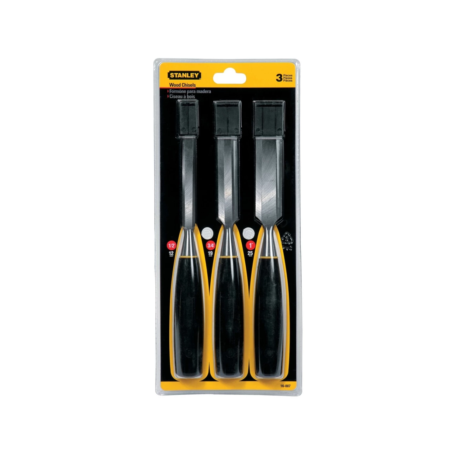 This Stanley Chisel three piece set provides a handy selection of chisels made from forged steel, with precision ground blades and polypropylene handles. Fully heat treated forged steel blade for longer lifePolypropylene handle for a comfortable grip, practically unbreakable.