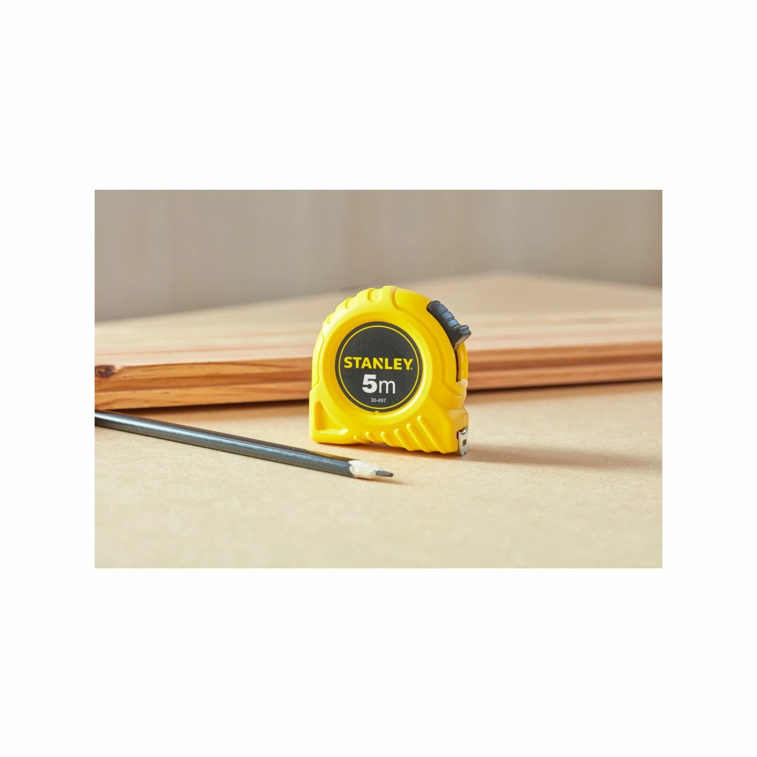 The Stanley 5m tape measure’s high contrast polymer coated blade gives long life and accurate readability. Other features include a durable high impact ABS case, non-slip grip, and thumb controlled positive blade lock. The Stanley 5m tape measure is also equipped with Stanley tru-zero functionality and a two rivet end hook for inside or outside measurements.