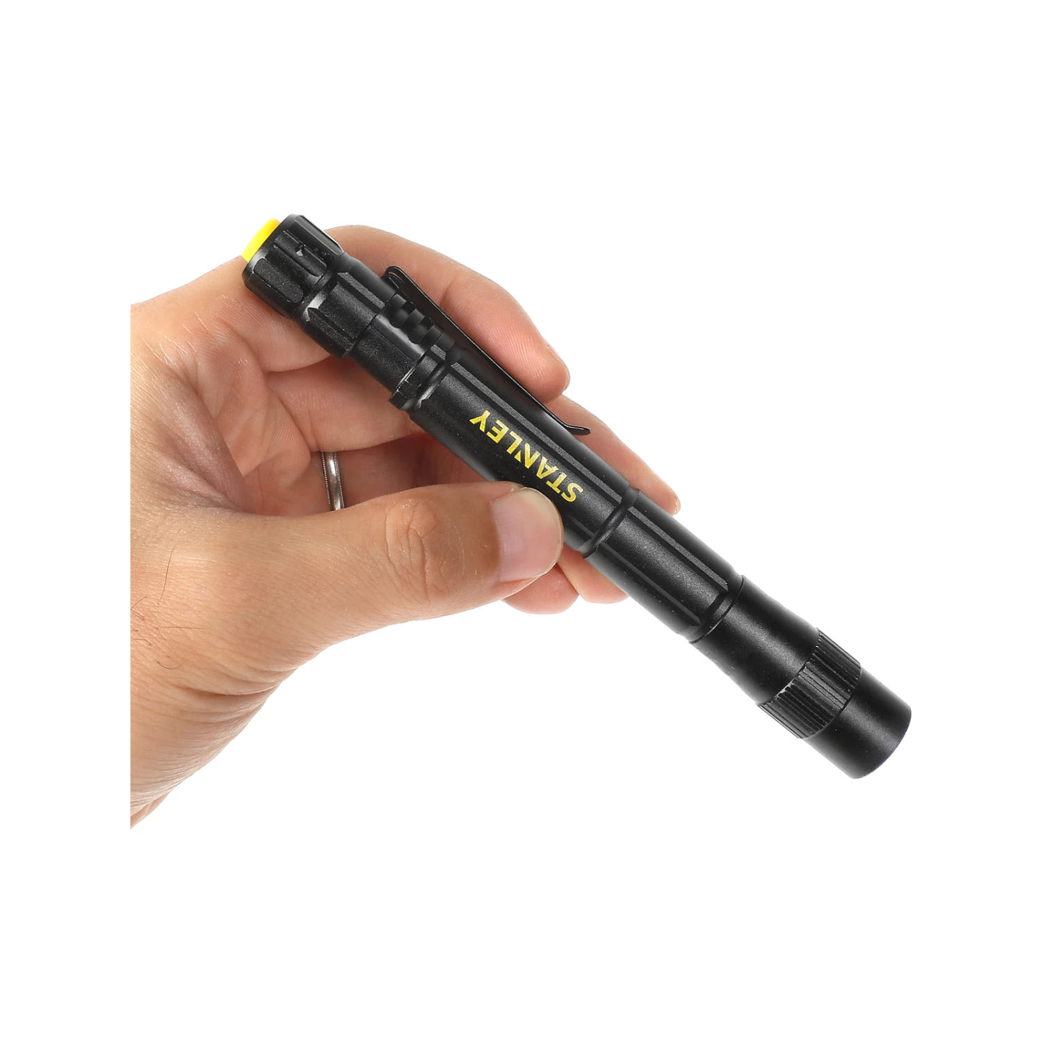 The Stanley Pen Light is made from 6063 aircraft grade aluminium. The strong housing boasts a bold check pattern design, offering anti-slip and anti-roll use. The 80 lumens of light provides a beam distance of 35 meters, providing ample convenient light in your pocket. Run time is 2 hours. Comes with 2 x AAA alkaline batteries ready for use.